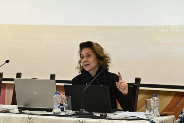• Η κ. Μαρίνα Δετοράκη, Καθηγήτρια Βυζαντινής Φιλολογίας του Πανεπιστημίου Κρήτης και Αναπληρώτρια Πρόεδρος της Εταιρείας Ελληνικής Γλώσσας και Μουσικής, με θέμα: «Εισαγωγικά Σχόλια»