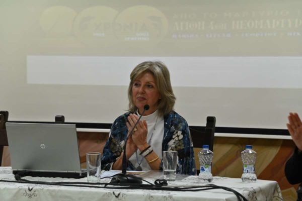 • Η κ. Δέσποινα Πετρουγάκη-Καλαϊτζαντωνάκη, PhD Βυζαντινής Φιλολογίας του Εργαστηρίου Παλαιογραφίας Τμήματος Φιλολογίας του Πανεπιστημίου Κρήτης, με θέμα: «Από το μαρτύριο της ύστερης αρχαιότητας στα αγιολογικά κείμενα των Νεομαρτύρων της Οθωμανικής περιόδου. Η περίπτωση των Τεσσάρων (Νεο)Μαρτύρων του Ρεθύμνου».