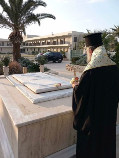 Στη συνέχεια, ο Σεβασμιώτατος τέλεσε Τρισάγιο επί του τάφου της μακαριστής Γεροντίσσης Πανσέμνης, στην Ιερά Μονή Σωτήρος Χριστού Κουμπέ Ρεθύμνης, όπου χοροστάτησε κατά την ακολουθία του Εσπερινού των Ψυχών και τέλεσε τα Τρισάγια των κεκοιμημένων αδελφών μας.