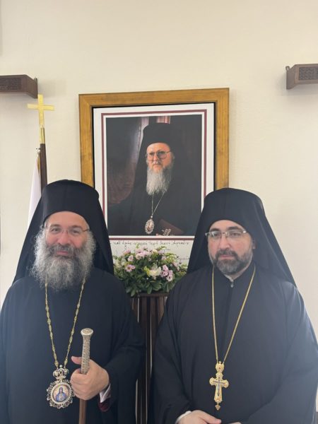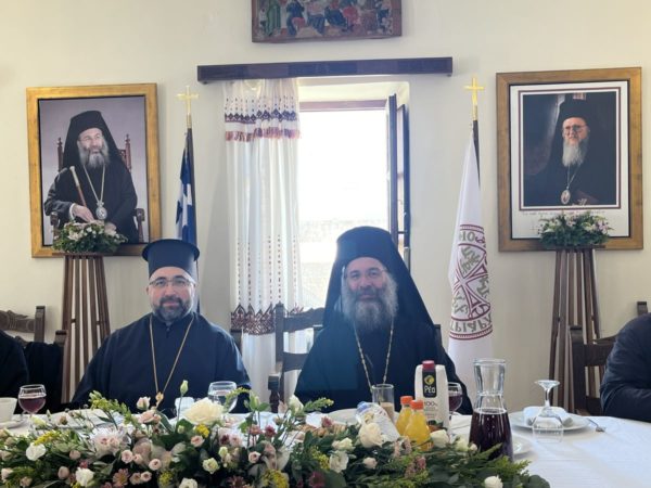 Ο Σεβασμιώτατος καλωσόρισε με θερμούς λόγους τον Πανοσιολογιώτατο Μέγα Ιεροκήρυκα κ. Πανάρετο και τη συνοδεία του, ερχομένους από την του Κωνσταντίνου Πόλη, και ευχήθηκε πάντοτε οι Άγιοι Ισαπόστολοι Κωνσταντίνος και Ελένη να διαφυλάσσουν τη Μητέρα μας Εκκλησία, το Οικουμενικό μας Πατριαρχείο, και τον Σεπτό Προκαθήμενο και Πανάξιο Οιακοστρόφο Αυτής, τον Παναγιώτατο Οικουμενικό Πατριάρχη κ.κ. Βαρθολομαίο.