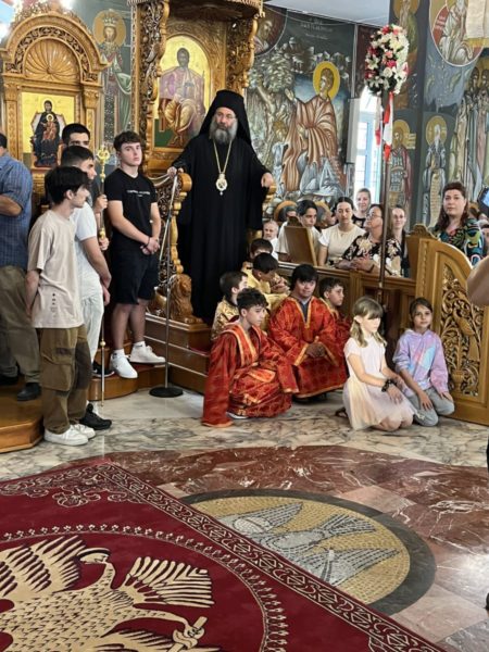 Στη Θεία Λειτουργία έλαβε μέρος ο Πανοσιολογιώτατος Μέγας Ιεροκήρυξ κ. Πανάρετος, ο οποίος, κατ’ αυτάς, συνοδεύει όμιλο πιστών από την Ενορία του Αγίου Ανδρέου του Οικουμενικού μας Πατριαρχείου της Ρωσόφωνης Παροικίας της Πόλεως, με καταγωγή από διάφορες χώρες (Ρωσία, Ουκρανία, Γεωργία, Γαγκαουζία, Μολδαβία), στην οποία διακονεί.