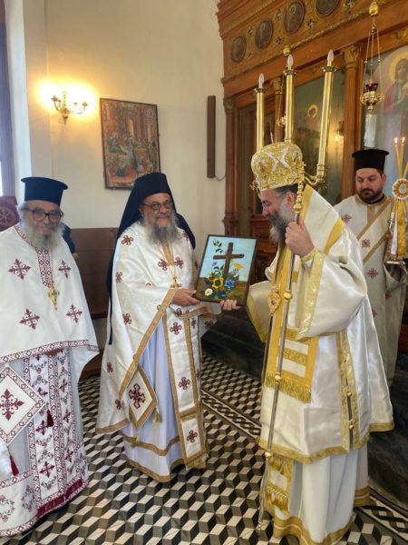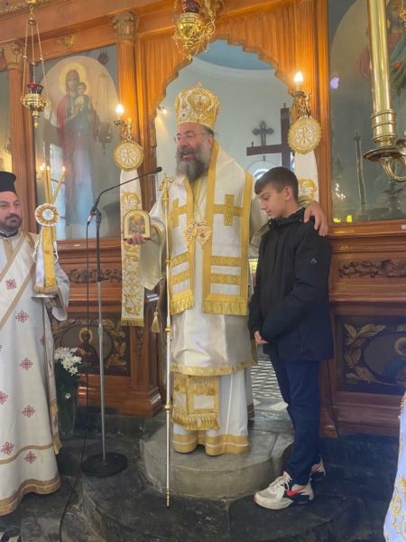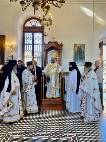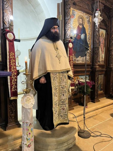 Επίσης, ο Επίσκοπός μας συνεχάρη τον εορτάζοντα τα ονομαστήριά του Πανοσιολογιώτατο Αρχιμανδρίτη Θεολόγο Παπαλεβυζάκη, Ηγουμενοσύμβουλο της Ιεράς Μονής Αρκαδίου, ευχόμενος σε εκείνον πλούσια την ευλογία του Θεού στην εκκλησιαστική του διακονία.