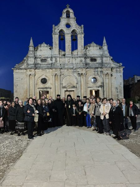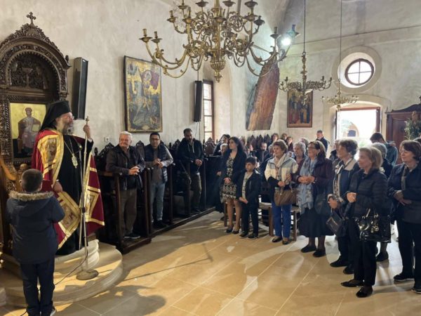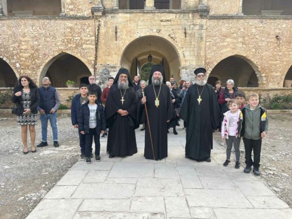 Προ της απολύσεως του Εσπερινού, ο Σεβασμιώτατος καλωσόρισε όμιλο προσκυνητών από την Ιερά Αρχιεπισκοπή Κρήτης υπό την ηγεσία του Πανοσιολογιωτάτου Αρχιμανδρίτου Κυρίλλου Χριστοφή, καθώς και άλλους προσκυνητές από το Ηράκλειο και άλλα μέρη της Μεγαλονήσου Κρήτης, εκφράζοντας τη χαρά του διότι πάντοτε το Αρκάδι αποτελεί σημείο συνάντησης και διαλόγου με το Θεό και τους ανθρώπους.
