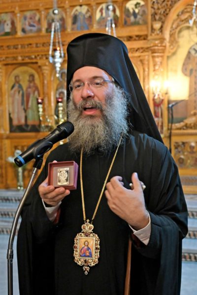 Ακολούθως, ο Σεβασμιώτατος επέδωσε εύφημο μνεία της Ιεράς Μητρόπολης και αναμνηστικό επετειακό αντιδώρημα σε όλους τους δωρητές, οι οποίοι, με διάφορους τρόπους, συνέβαλαν και στήριξαν την πρόσφατη ανακαίνιση των δαπέδων του Ιερού Ναού των Αγίων Τεσσάρων Μαρτύρων.