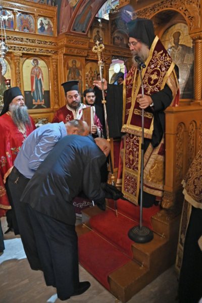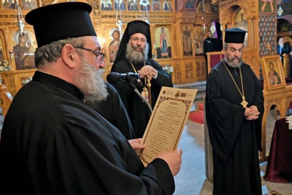 Προ της απολύσεως του Εσπερινού, ο Σεβασμιώτατος προχείρισε σε Αναγνώστες δύο εγκρίτους συντοπίτες, τον Αντιστράτηγο κ. Μιχαήλ Νικολουδάκη και τον συνταξιούχο Διδάσκαλο κ. Νικόλαο Σταυρακάκη, επαινώντας καταλλήλως την πολύτιμη προσφορά του μεν πρώτου στον Ελληνικό Στρατό, σε πολλές και υψηλές βαθμίδες διοίκησης, του δε δευτέρου στην Εκπαίδευση, επί σειρά πολλών ετών, και τιμώντας το ήθος, τη φιλοπατρία, την ευσέβεια και την πίστη των δύο αυτών ανθρώπων.