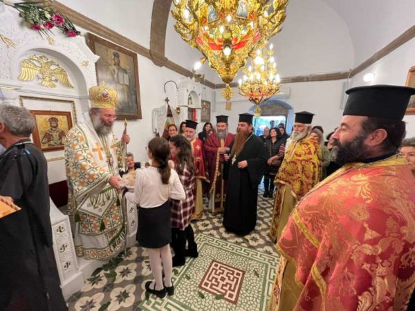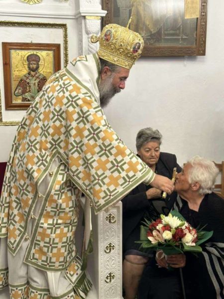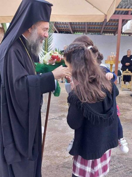 Προ της απολύσεως της Θείας Λειτουργίας, τον Σεβασμιώτατο προσφώνησε με θερμούς λόγους ο Εφημέριος, Αιδεσιμολ. Πρωτοπρεσβύτερος Θεόδωρος Σηφάκης, ο οποίος εξέφρασε τη χαρά του για την ανταπόκριση των ανθρώπων πάντοτε στην πρόσκληση της Εκκλησίας, επαινώντας τους ενορίτες για τον τρόπο με τον οποίο αγκαλιάζουν και αγαπούν τη λατρευτική ζωή της Εκκλησίας.