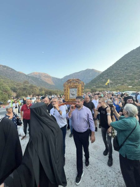 Στη λιτανεία της Ιεράς Εικόνος έλαβαν μέρος ο Πρωτοσύγκελλος της Ιεράς Μητροπόλεως Λάμπης, Συβρίτου και Σφακίων, Πανοσιολ. Αρχιμανδρίτης Αθανάσιος Καραχάλιος, ο Ηγούμενος της Ιεράς Πατριαρχικής και Σταυροπηγιακής Μονής Μεταμορφώσεως του Σωτήρος Χαλέπας, Πανοσιολ. Αρχιμανδρίτης Πορφύριος Αουάντ, ο Ιεροκήρυξ της Ιεράς Μητροπόλεως Ρεθύμνης και Αυλοποτάμου και Ιεροεπιστάτης του Ιερού Μετοχίου Αγίου Παύλου Γάλλου, Πανοσιολ. Αρχιμανδρίτης Άνθιμος Μαντζουράνης, οι αυτάδελφοι Πανοσιολ. Αρκαδιώτες Αρχιμανδρίτες, Παρθένιος και Ευμένιος Τσιλιμπώκος, και άλλοι Κληρικοί της Ιεράς Μητροπόλεως Ρεθύμνης και Αυλοποτάμου, υπό την καθοδήγηση και τελεταρχία του Ηγουμένου της Ιεράς Μονής Τιμίου Προδρόμου Ατάλης-Μπαλή, Πανοσιολ Αρχιμανδρίτου Παρθενίου Καλυβιανάκη.