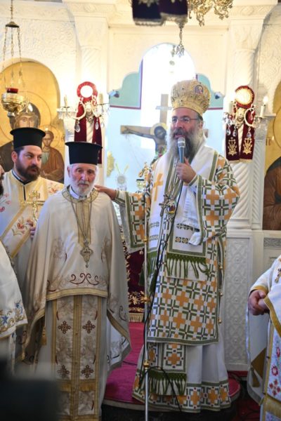 Προ της απολύσεως της Θείας Λειτουργίας, ο Πρωτοσύγκελλος, Πανοσιολ. Αρχιμανδρίτης Αθανάσιος, προσεφώνησε τον Σεβασμιώτατο Μητροπολίτη Ρεθύμνης και Αυλοποτάμου κ. Πρόδρομο, εκφράζοντας τις ευχαριστίες για τη μεγάλη αυτή ευλογία και ιστορική ημέρα για τις Μέλαμπες και κομίζοντας τον ασπασμό και την αγάπη του Σεβασμιωτάτου Μητροπολίτου Λάμπης, Συβρίτου και Σφακίων κ. Ειρηναίου, για το γεγονός αυτό, τονίζοντας ότι «σήμερα οι Μέλαμπες ζουν Πάσχα».