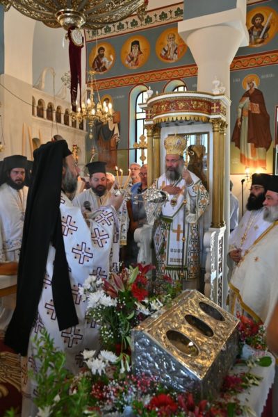 Μετά την υποδοχή, ακολούθησε ο Όρθρος και η Αρχιερατική Θεία Λειτουργία, ιερουργούντος του Σεβασμιωτάτου Μητροπολίτου Ρεθύμνης και Αυλοποτάμου κ. Προδρόμου, στην οποία συμμετείχαν ο Πανοσιολ. Αρχιμανδρίτης Αθανάσιος Καραχάλιος, Πρωτοσύγκελλος της Ιεράς Μητροπόλεως Λάμπης, Συβρίτου και Σφακίων, και πλήθος Κληρικών από τις Ιερές Μητροπόλεις Λάμπης, Συβρίτου και Σφακίων και Ρεθύμνης και Αυλοποτάμου.
