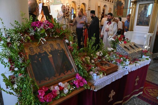 Ακολούθως, με λόγους συγκινητικούς και καρδιακούς προσεφώνησε τον Σεβασμιώτατο και την ομήγυρη των πιστών ο Εφημέριος της Ενορίας Μελάμπων, Αιδεσιμολ. Πρωτ. Ευάγγελος Τσουρδαλάκης, ο οποίος ένδακρυς, με αισθήματα πνευματικής χαράς και αγαλλιάσεως, αναφέρθηκε στη σπουδαιότητα της σημερινής ημέρας και στη μεγάλη αυτή τιμή για τη γενέτειρα των Αγίων να υποδέχεται, για πρώτη φορά στην ιστορία, τις Τίμιες Κάρες τους, εκφράζοντας τις θερμές ευχαριστίες του προς όλους, όσοι με κάθε τρόπο συνέβαλαν στην πραγματοποίηση της ιστορικής αυτής στιγμής.