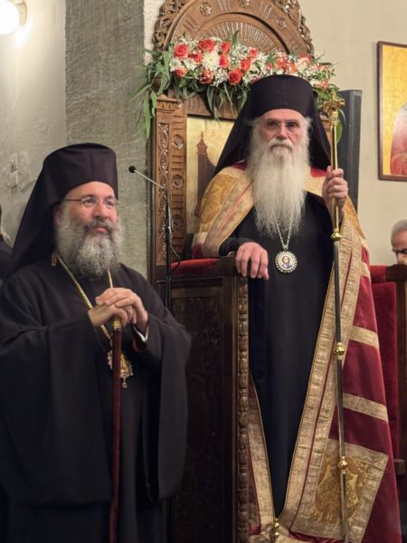Ο Σεβασμιώτατος Ποιμενάρχης κ. Πρόδρομος, με λόγους ευγνωμοσύνης, ευχαρίστησε τον Σεβασμιώτατο Μητροπολίτη Μεσογαίας και Λαυρεωτικής κ. Νικόλαο, ο οποίος, μέσα σε μόλις τρεις ημέρες, τίμησε δύο φορές την πόλη μας, ερχόμενος κατ’ αρχήν στο 2ο Συνέδριο Βιοηθικής του Οικουμενικού Πατριαρχείου και, αμέσως μετά δύο ημέρες, ερχόμενος και πάλι για τη συμμετοχή του στην Πανήγυρι της Αγίας Βαρβάρας.