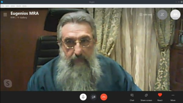 «Σεβασμιώτατε, αγαπητέ μας κύριε Βλατάκη, οικοδεσπότη της όμορφης αυτής διαδικτυακής εκδηλώσεως, αξιότιμοι κυρίες και κύριοι, είναι μεγάλη η τιμή και η περηφάνια που εκπροσωπώντας την Ιστορική Μονή του Αγίου Πνεύματος ως Ηγούμενος της, βρίσκομαι ανάμεσα σας για πρώτη φορά, έστω και εκ του μακρόθεν, καθώς οι συγκυρίες επιβάλλουν. Ας ευχηθούμε σύντομα να καλυτερέψουν και του χρόνου πρώτα ο Θεός να ανταμώσουμε εκ του σύνεγγυς.