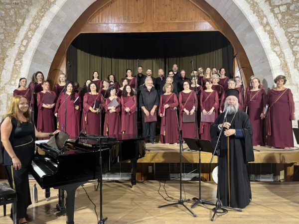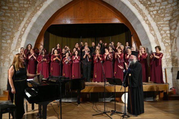 Η Μικτή Χορωδία του Δήμου Ρεθύμνης, παρουσιάζοντας πλούσιο μουσικό πρόγραμμα με το γενικό τίτλο «Όταν Ελλήνων μουσικές στον κόσμο ταξιδεύουν…», «ταξίδεψε» το πολυπληθές ακροατήριο με όμορφα τραγούδια μεγάλων Ελλήνων δημιουργών, τα οποία, όπως σημείωσε ο Σεβασμιώτατος Μητροπολίτης Ρεθύμνης και Αυλοποτάμου κ. Πρόδρομος στην αποφώνησή του, «έφθασαν μέχρι τον ουρανό, ως εύοσμο θυμίαμα στην επέτειο των Αγίων μας».
