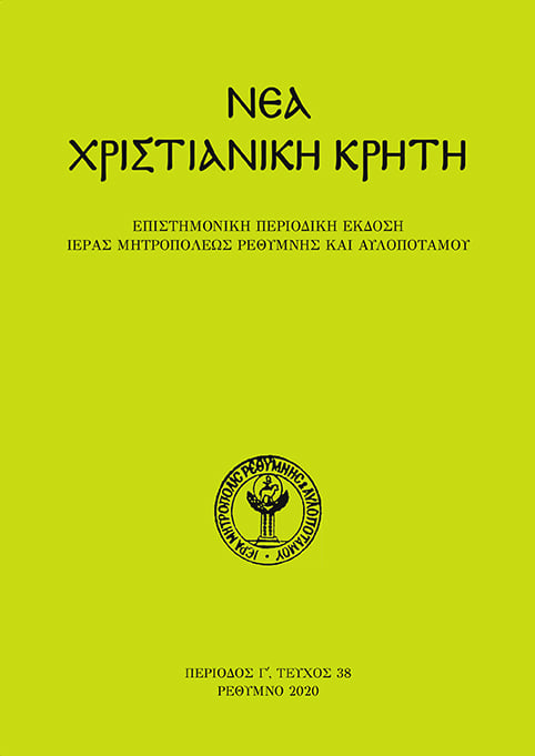 Εκδόθηκε και κυκλοφόρησε για το έτος 2020 το υπ’ αριθμ. 38 τεύχος του επιστημονικού περιοδικού της Ιεράς Μητροπόλεως Ρεθύμνης και Αυλοποτάμου Νέα Χριστιανική Κρήτη. Στο Προλόγισμά του στο τεύχος αυτό, ο Σεβ. Μητροπολίτης Ρεθύμνης και Αυλοποτάμου κ. Ευγένιος αναφέρει, μεταξύ άλλων, τα εξής: