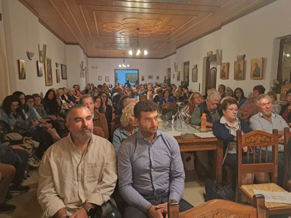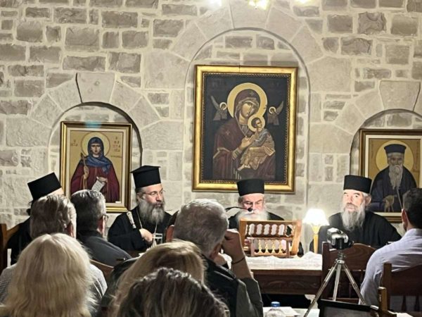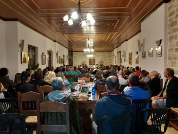 Ο Σεβασμιώτατος Μητροπολίτης Ρεθύμνης και Αυλοποτάμου κ. Πρόδρομος μετέβη, στις 17 Οκτωβρίου, στην Ιερά Μονή Αγίας Αναστασίας της Ρωμαίας Ρεθύμνης, όπου είχε την ευκαιρία, μαζί με πολυπληθές ακροατήριο, να παρακολουθήσει την ομιλία του Πανοσιολ. Ιερομονάχου Αρτεμίου εκ της Ιεράς Μονής Γρηγορίου Αγίου Όρους με θέμα: «Ο άγιος Πορφύριος ο Καυσοκαλυβίτης ως πρότυπο αγάπης και ταπεινώσεως».