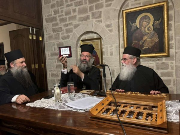 Στον π. Αρτέμιο ο Σεβασμιώτατος προσέφερε επετειακές εκδόσεις της Ιεράς Μητροπόλεως Ρεθύμνης και Αυλοποτάμου, εξ αφορμής της 200ετηρίδος από τη μαρτυρική τελείωση των εν Ρεθύμνη Αγίων Τεσσάρων Νεομαρτύρων.
