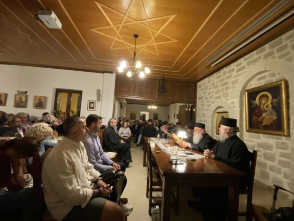 Προ της λήξεως της πνευματικής αυτής εσπερίδας, ο Σεβασμιώτατος συνόψισε τις βασικές γραμμές από την εμπνευσμένη ομιλία του π. Αρτεμίου, τον οποίο ευχαρίστησε θερμά για την παρουσία του, τονίζοντας τον σύνδεσμο της Ιεράς Μητροπόλεως Ρεθύμνης και Αυλοποτάμου, και μάλιστα της Ιεράς Μονής Αγίας Αναστασίας της Ρωμαίας, με το Άγιο Όρος και την Ιερά Μονή Γρηγορίου, καθώς ο Ηγούμενος π. Βασίλειος επί σειρά ετών ασκήθηκε σε αυτήν, υπό την πεπνυμένη καθοδήγηση του οσιοτρόπου Γέροντος Γεωργίου Καψάνη.