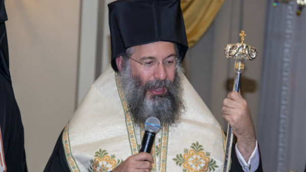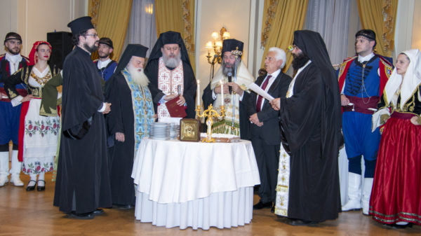 Στη συνέχεια ο κ. Γ. Βλατάκης αφού ευχήθηκε σε όλους τα δέοντα , υποδέχθηκε τον Σεβασμιώτατο Μητροπολίτη Ρεθύμνης και Αυλοποτάμου υπέρτιμο και Έξαρχο Άνω Κρήτης και Πελάγους Κρητικού κ. Πρόδρομο, ο οποίος εκπροσωπούσε και την Α.Θ.Π. τον Οικουμενικό Πατριάρχη κ.κ. Βαρθολομαίο Α΄, με τον πλέον παραδοσιακό τρόπο ,όπως αρμόζει στην υποδοχή εκ των Κρητών σε εκκλησιαστικά πρόσωπα. Τον υποδέχθηκε με θυμιατό ενώ του πρόσφερε τον πλακούντα (άρτο), και με κρητικό μαχαίρι ο Δεσπότης αφού το σταύρωσε, έκοψε ένα κομμάτι και το βούτηξε στο κρητικό μέλι όπου το γεύτηκε. Εν συνεχεία του πέρασε την κρητική πετσέτα η οποία έφερε την άμπελο. Μία μοναδική και σπάνια στιγμή που συγκίνησε ιδιαιτέρως τον Σεβασμιώτατο και τους παρευρισκομένους καταχειροκροτώντας. Αυτή ήταν και η επίσημη υποδοχή που επεφύλαξαν οι απόδημοι Ρεθεμνιώτες της Αττικής στην πρώτη επαφή γνωριμίας με τον νέο Μητροπολίτη Ρεθύμνης και Αυλοποτάμου.