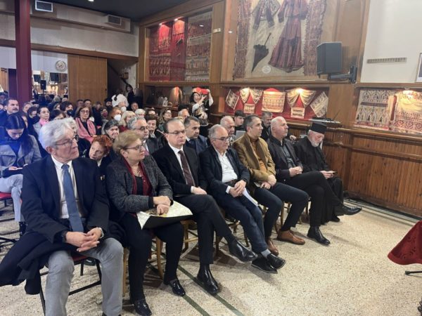 Στην κατάμεστη αίθουσα του Λυκείου των Ελληνίδων, μεταξύ του πλήθους των ανθρώπων του τόπου μας, παρέστησαν η Αντιπεριφερειάρχης Ρεθύμνης κ. Μαίρη Λιονή, ο Δήμαρχος Ρεθύμνης κ. Γεώργιος Μαρινάκης, Αντιδήμαρχοι, η επικεφαλής της Μείζονος Αντιπολιτεύσεως του Δήμου Ρεθύμνης κ. Ειρήνη Κουτσαλεδάκη, Περιφερειακοί και Δημοτικοί Σύμβουλοι, ο Αστυνομικός Διευθυντής Νομού Ρεθύμνης, Ταξίαρχος κ. Εμμανουήλ Παπαδάκης, ο Ανώτατος Διοικητής Φρουράς Ρεθύμνης και Διοικητής του 548 Α/Μ Τάγματος Πεζικού, Αντισυνταγματάρχης κ. Ιωάννης Καλυβιώτης, ο Αντιπρύτανης του Πανεπιστημίου Κρήτης ελλογιμ. κ. Κωνσταντίνος Σπανουδάκης, ο Διοικητής του ΠΑ.Γ.ΝΗ., ελλογιμ. κ. Γεώργιος Χαλκιαδάκης, οι Καθηγητές κ. Νικόλαος Παπαδογιαννάκης και κ. Χρήστος Λιονής, πολλοί Κληρικοί της Ιεράς Μητροπόλεώς Ρεθύμνης και Αυυλοποτάμου καθώς και ο Αιδεσιμολ. Πρωτοπρεσβύτερος Ευάγγελος Τσουρδαλάκης, Εφημέριος των Μελάμπων, της γενέτειρας των Αγίων Τεσσάρων Νεομαρτύρων.