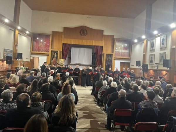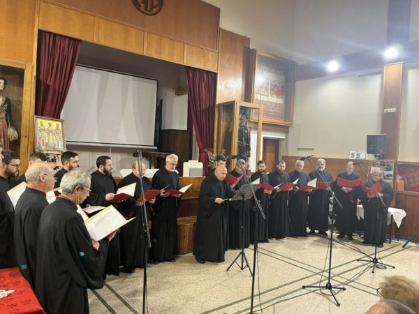 Στην έναρξη της εκδήλωσης, η Χορωδία της Σχολής Βυζαντινής Μουσικής της Ιεράς Μητροπόλεως Ρεθύμνης και Αυλοποτάμου, υπό τη διεύθυνση του μουσικολογιωτάτου Πρωτοψάλτου κ. Ευαγγέλου Καπαϊδονάκη, απέδωσε εκκλησιαστικούς ύμνους των Αγίων Τριών Ιεραρχών και των Αγίων Τεσσάρων Μαρτύρων, καθώς και παραδοσιακά κάλαντα, αναφερόμενα στους Τρεις Μεγάλους Ιεράρχες.