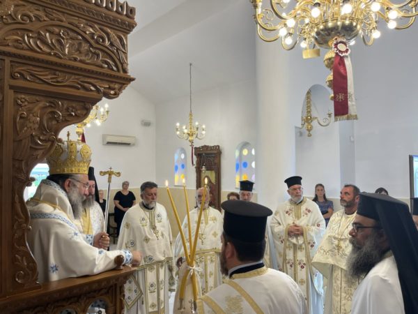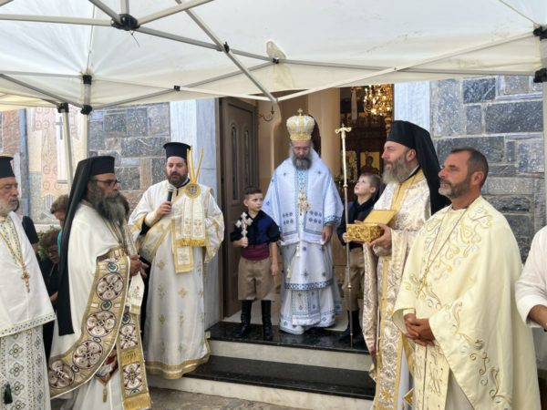 Προ της απολύσεως της Θείας Λειτουργίας, ο Σεβασμιώτατος εξέφρασε τη χαρά του για τη συμμετοχή όλων μας στην ετήσια Πανήγυρι, για μία ακόμη χρονιά, χαιρέτισε και συνεχάρη τον Εφημέριο της Ενορίας, Αιδεσιμολ. Πρωτοπρεσβύτερο Δαυΐδ Μιγαδάκη, και το Εκκλησιαστικό Συμβούλιο, τον Δήμαρχο Μυλοποτάμου κ. Γεώργιο Κλάδο και Αντιδημάρχους του Δήμου, τον Θεματικό Αντιπεριφερειάρχη της Περιφέρειας Κρήτης στον τομέα Επιχειρηματικότητας κ. Μιχάλη Βάμβουκα, τον Εντεταλμένο Περιφερειακό Σύμβουλο στον τομέα Πολιτικής Προστασίας και Πρόεδρο του Κέντρου Πρόληψης Περιφερειακής Ενότητος Ρεθύμνης κ. Μιχάλη Σαρρή, τον Λιμενάρχη Ηρακλείου, Αντιπλοίαρχο κ. Νικόλαο Τσομπάνη, τον Λιμενάρχη Ρεθύμνης, Πλωτάρχη κ. Κωνσταντίνο Καστρινάκη, εκπροσώπους του Στρατού και των Σωμάτων Ασφαλείας, καθώς και το πλήθος των προσκυνητών που προσήλθαν από διάφορα μέρη της Κρήτης.