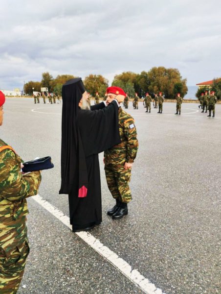 Ο Μητροπολίτης Ρεθύμνης στην απόδοση κόκκινου μπερέ στο 547 Α/Τ Πεζικού