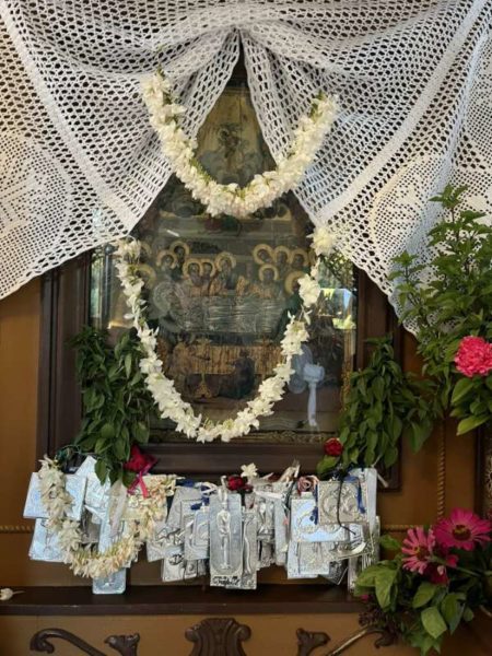 Μετά την ακολουθία, προσφέρθηκε, στον προαύλειο χώρο, κέρασμα προς τους προσκυνητές και δόθηκε η δυνατότητα μιας όμορφης κουβέντας-αποσπερίδας.