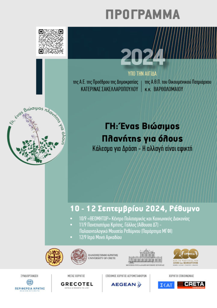 Το φλέγον ζήτημα της κλιματικής αλλαγής, η βιωσιμότητα και η αειφορία, θα τεθούν στο επίκεντρο του τριήμερου Οικολογικού Συμποσίου «ΓΗ: Ένας Βιώσιμος Πλανήτης για όλους – Κάλεσμα για Δράση – Η αλλαγή είναι εφικτή», που θα πραγματοποιηθεί στο Ρέθυμνο μεταξύ 10 και 12 Σεπτεμβρίου 2024.
