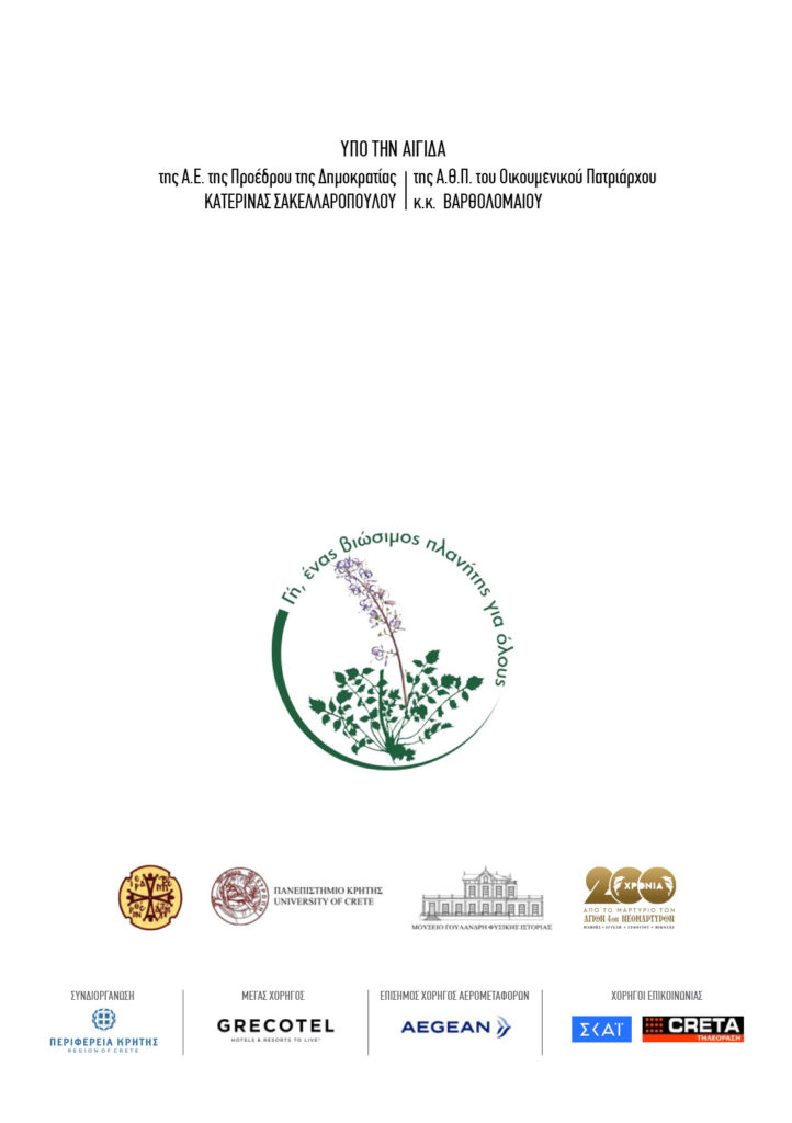 Το Συμπόσιο τελεί υπό την αιγίδα της Α.Ε. της Προέδρου της Δημοκρατίας Κατερίνας Σακελλαροπούλου και της Α.Θ.Π. του Οικουμενικού Πατριάρχου κ.κ. Βαρθολομαίου, και συνδιοργανώνεται από την Ιερά Μητρόπολη Ρεθύμνης και Αυλοποτάμου, το Πανεπιστήμιο Κρήτης, το Μουσείο Γουλανδρή Φυσικής Ιστορίας και την Περιφέρεια Κρήτης, στους χώρους της Ιεράς Μητροπόλεως (ανάμεσά τους και η Μονή Αρκαδίου), του Πανεπιστημίου Κρήτης και του Παλαιοντολογικού Μουσείου Ρεθύμνου (παράρτημα ΜΓΦΙ).