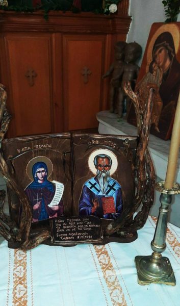 Στον Σεβασμιώτατο προσφέρθηκε από την Ενορία ως δώρο δίπτυχη Ιερά Εικόνα των Αγίων Αποστόλου Τίτου και Πελαγίας με αναγραφόμενη μαντινάδα, την οποία είχε συντάξει ο αείμνηστος π. Νεκτάριος Θεοδωράκης, προετοιμάζοντας την πρώτη επίσκεψη του Σεβασμιωτάτου στην Ενορία Απλαδιανών.