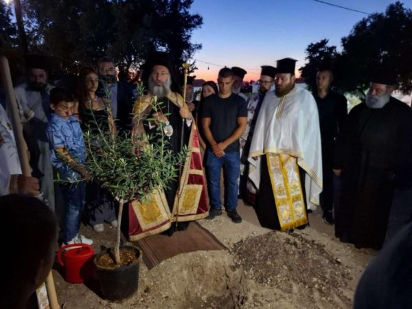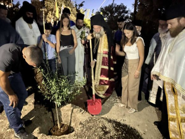 Σε μια κίνηση συμβολισμού, ο Σεβασμιώτατος, μαζί με τον παρόντα Εντεταλμένο Δημοτικό Σύμβουλο Πρασίνου κ. Γεώργιο Παπαδόσηφο και τα νέα παιδιά της Ενορίας, φύτεψαν, στον προαύλειο χώρο του Ναού, ο οποίος καταστολίζεται από πολυχρόνια δένδρα, μια ελιά.