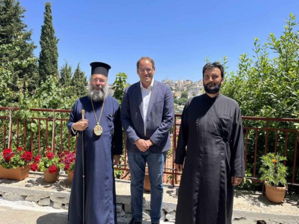 Στη συνέχεια, ο Σεβασμιώτατος επισκέφθηκε τους χώρους της Ιεράς Μονής Αγίου Νεκταρίου Ανωγείων, με την παρουσία του Αιδεσ. Πρωτοπρεσβυτέρου Κωνσταντίνου Πλουσή, όπου και συναντήθηκε με τον εντιμότατο κ. Σωκράτη Κεφαλογιάννη, Δήμαρχο Ανωγείων, με τον οποίο υπήρξε εποικοδομητική συζήτηση σχετικά με την περαιτέρω συντήρηση και αξιοποίηση του κτηριακού συγκροτήματος της εν λόγω Ιεράς Μονής.