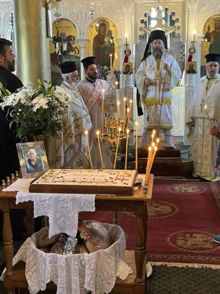Ακολούθησε επιμνημόσυνη τράπεζα προς το πολυπληθές εκκλησίασμα από πλευράς της οικογένειας της μακαριστής Μαρίας Δραμουντάνη.