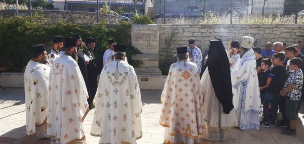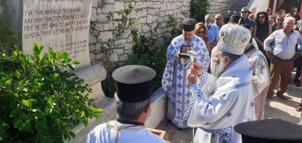 Στο τέλος της Θείας Λειτουργίας ο Σεβασμιώτατος τέλεσε Ιερό Τρισάγιο στο Μνημείο της Μικρασιάτισσας Μάνας που βρίσκεται στον προαύλιο χώρο του Ιερού Ναού, με αφορμή και τα 100 έτη από τη Μικρασιατική Καταστροφή.