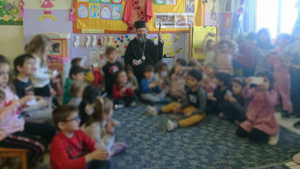 Ο Σεβασμιώτατος είχε μια όμορφη συζήτηση με τα παιδιά για τις ημέρες της Μεγάλης Εβδομάδος και του Πάσχα, και θαύμασε πόσα πράγματα τα παιδιά γνώριζαν και είπαν για τις άγιες αυτές ημέρες.