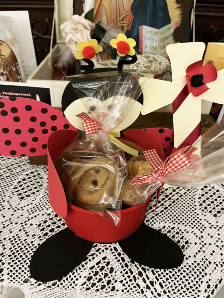 Ακόμη, ο Μητροπολίτης δέχθηκε με χαρά τα δώρα των παιδιών, την πασχαλινή κάρτα και το ωραίο καλαθάκι με τα γλυκίσματα και τα κόκκινα αυγά, και ο ίδιος τους μοίρασε μια μικρή εικόνα του Κυρίου, ο Οποίος ομιλεί στα παιδιά.