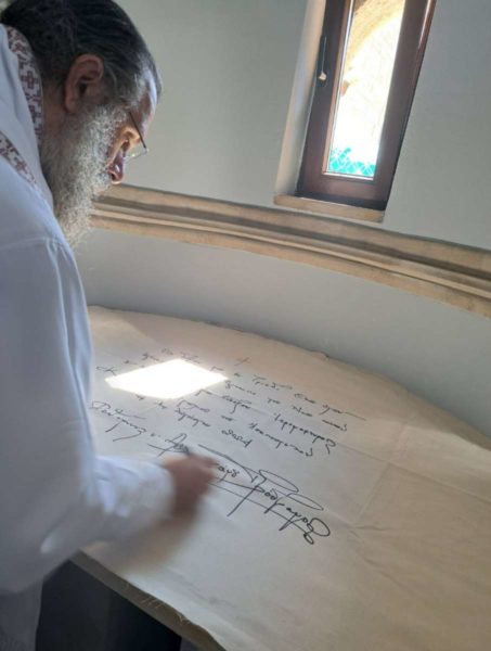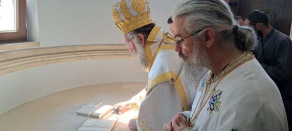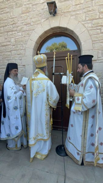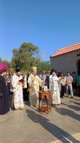 Τον Σεβασμιώτατο με βαθειά συγκίνηση προσεφώνησε ο Καθηγούμενος και κτήτορας της Ιεράς Μονής, Πανοσιολ. Αρχιμανδρίτης Βασίλειος Παπαδάκης, δοξάζοντας τον Θεό για την ιστορική αυτή ημέρα, μετά από 15 ολόκληρα χρόνια, και εκφράζοντας ευχαριστίες προς όλους, όσοι με κάθε τρόπο συνέβαλαν στο έργο τούτο.