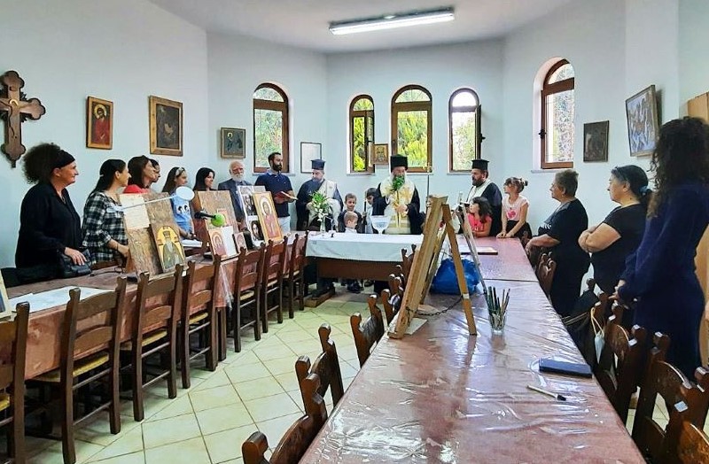 Μετά την τέλεση του Αγιασμού, την Τρίτη 4 Οκτωβρίου 2022, ο Σεβασμιώτατος ευχήθηκε στον Εφημέριο της Ενορίας, Αιδεσ. Πρωτοπρεσβύτερο Νικόλαο Ζωλοτάκη, στο Εκκλησιαστικό Συμβούλιο, στο δάσκαλο κ. Γεώργιο Καραβιώτη, που αφιλοκερδώς προσφέρει τις υπηρεσίες του στη Σχολή Αγιογραφίας, και σε όλους τους συνεργάτες της Ενορίας και τα μικρά παιδιά, καλή δύναμη και πλούσιο τον φωτισμό του Θεού και την πνευματική καρποφορία μέσα στην αγκαλιά της δραστήριας αυτής Ενορίας.
