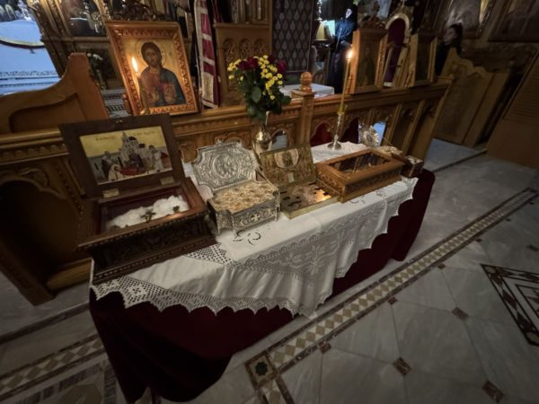 Κατά τη διάρκεια της Ιεράς Αγρυπνίας τέθηκαν σε προσκύνηση οι Τίμιες Κάρες των Αγίων Τεσσάρων Νεομαρτύρων καθώς και Ιερά Λείψανα διαφόρων Αγίων, τα οποία φυλάσσονται στις Ιερές Μονές της Τοπικής Εκκλησίας και μεταφέρθηκαν στον Ιερό Ναό ειδικά για την Ιερά Αγρυπνία.