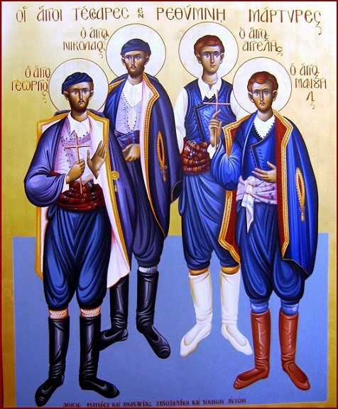 Μέγας Πανηγυρικός Εσπερινός επί τη μνήμη των Αγίων Τεσσάρων Μαρτύρων: Γεωργίου, Αγγελή, Μανουήλ και Νικολάου εκ Ρεθύμνης, θα τελεστεί απόψε στις 7.00 (Τετάρτη 27 Οκτωβρίου) στον πανηγυρίζοντα φερώνυμο Ιερό Ναό τους στο Ρέθυμνο. Θα χοροστατήσει ο Σεβασμιώτατος Μητροπολίτης Ρεθύμνης και Αυλοποτάμου κ. Ευγένιος.