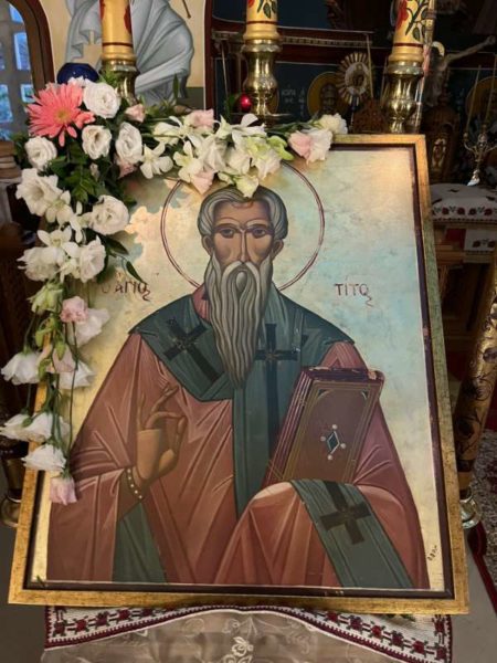 Ο Σεβασμιώτατος ευχήθηκε σε όλους τους ανθρώπους να είμαστε πιστοί και συνεπείς στην αποστολή, στο καθήκον και στο έργο μας και πιστοί στην υγιαίνουσα διδασκαλία, την οποία ο Απόστολος Παύλος παρήγγειλε στον Απόστολο Τίτο να καλλιεργήσει και να διδάξει στη Μεγαλόνησο Κρήτη.