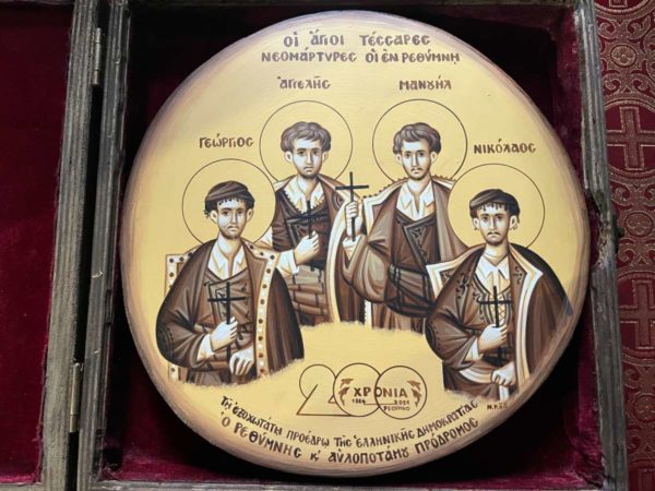 Επίσης, ο Σεβασμιώτατος τόνισε τη σπουδαιότητα του έτους 2024 για την Ιερά Μητρόπολη Ρεθύμνης και Αυλοποτάμου, καθώς συμπληρώνονται 200 χρόνια από τη μαρτυρική τελείωση των Αγίων Τεσσάρων Νεομαρτύρων, Γεωργίου, Αγγελή, Μανουήλ και Νικολάου, των εν Ρεθύμνη μαρτυρησάντων κατά το έτος 1824, προσκαλώντας την Εξοχωτάτη κ. Πρόεδρο της Δημοκρατίας στις καταληκτήριες εκδηλώσεις, οι οποίες θα πραγματοποιηθούν, συν Θεώ, κατά το τέλος τους τρέχοντος έτους, και προσφέροντάς της, ως αντίδωρο, Ιερά Εικόνα των Αγίων Τεσσάρων Νεομαρτύρων.