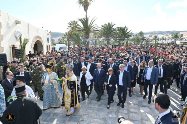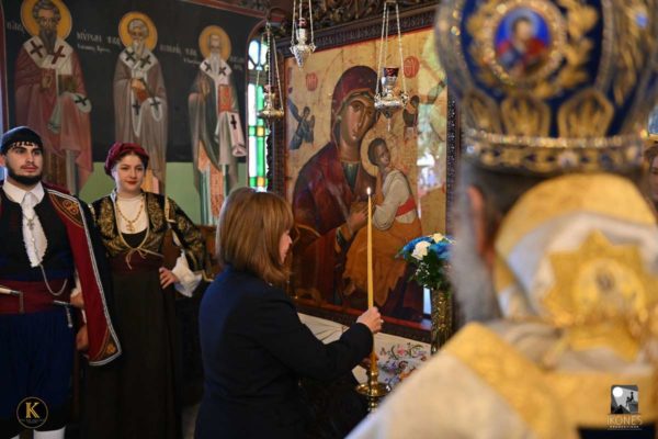 Προ της απολύσεως της Θείας Λειτουργίας, ο Σεβασμιώτατος Ποιμενάρχης κ. Πρόδρομος προσεφώνησε και καλωσόρισε την Εξοχωτάτη κ. Πρόεδρο της Δημοκρατίας στην πρώτη της επίσκεψη στο Ρέθυμνο, ευχόμενος πάντοτε όλοι να επιλέγουμε το φως ενάντια στο κάθε σκοτάδι που επαπειλεί τη ζωή μας και την αιώνια προοπτική του ανθρωπίνου προσώπου και το Φως του Χριστού να καταυγάζει τη ζωή, τις αποφάσεις και τις ενέργειές μας.