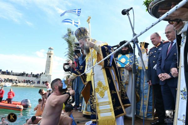 Μετά το πέρας της Θείας Λειτουργίας και του Μεγάλου Αγιασμού, ακολούθησε λιτανευτική πομπή προς τον Ενετικό Λιμένα της πόλεως Ρεθύμνης, όπου πραγματοποιήθηκε η κατάδυση του Τιμίου Σταυρού, παρουσία εκατοντάδων πιστών καθώς και όλων των τοπικών Αρχών και των προκρίτων του Στρατού και των Σωμάτων Ασφαλείας.