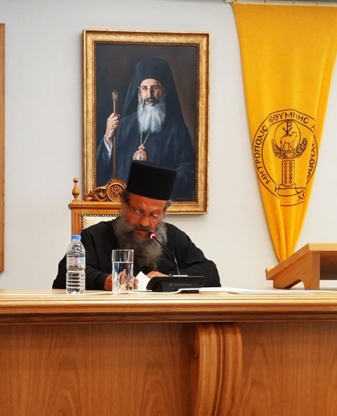 Κατόπιν προσκλήσεως και προτροπής του Σεβ.Μητροπολίτου Ρεθύμνης και Αυλοποτάμου κ. Προδρόμου, ο Πανοσιολ. Αρχιμ. Τιμόθεος Παναγιωτάκης, Καθηγούμενος της Ιεράς Πατριαρχικής και Σταυροπηγιακής Μονής Τιμίου Σταυρού Βωσάκου, παρουσίασε στην Ιερατική Σύναξη εισήγηση με θέμα: «Οι επιπτώσεις της πανδημίας στην εκκλησιαστική ζωή και εμπειρία».
