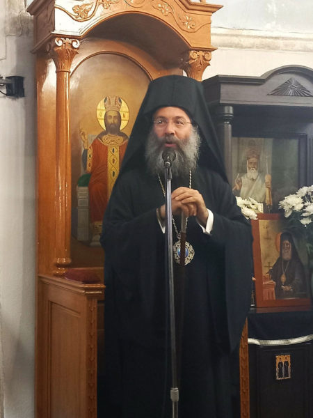 Ο Σεβασμιώτατος, στην αντιφώνησή του, εξέφρασε τη χαρά του για την πρώτη του ποιμαντική παρουσία στον Ιερό αυτό Ναό της Παναγίας και μνημόνευσε την προ ολίγων μηνών συμμετοχή του στην εξόδιο ακολουθία του μακαριστού Πρωτοπρεσβυτέρου Εμμανουήλ Φραντζεσκάκη, κατά σάρκα πατρός του Εφημερίου π. Ιωάννου.