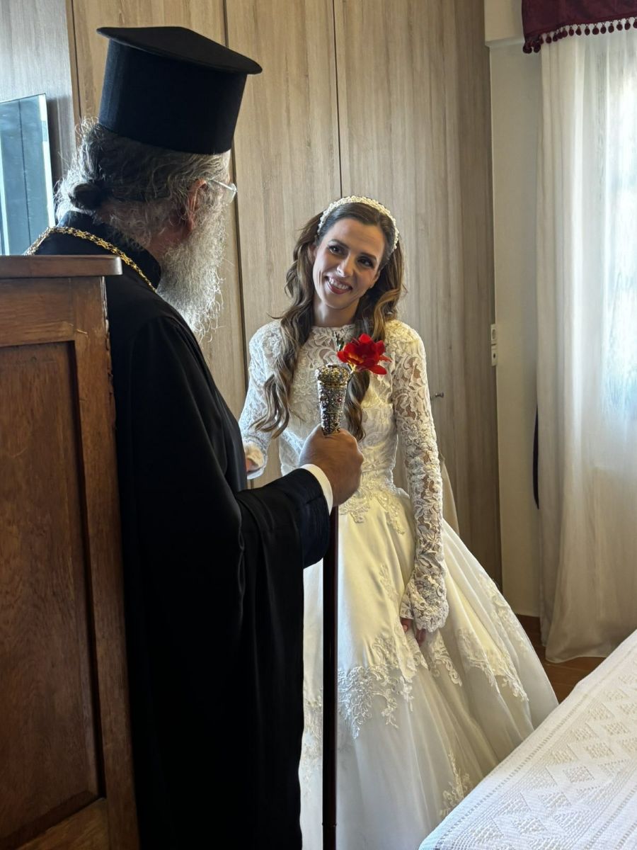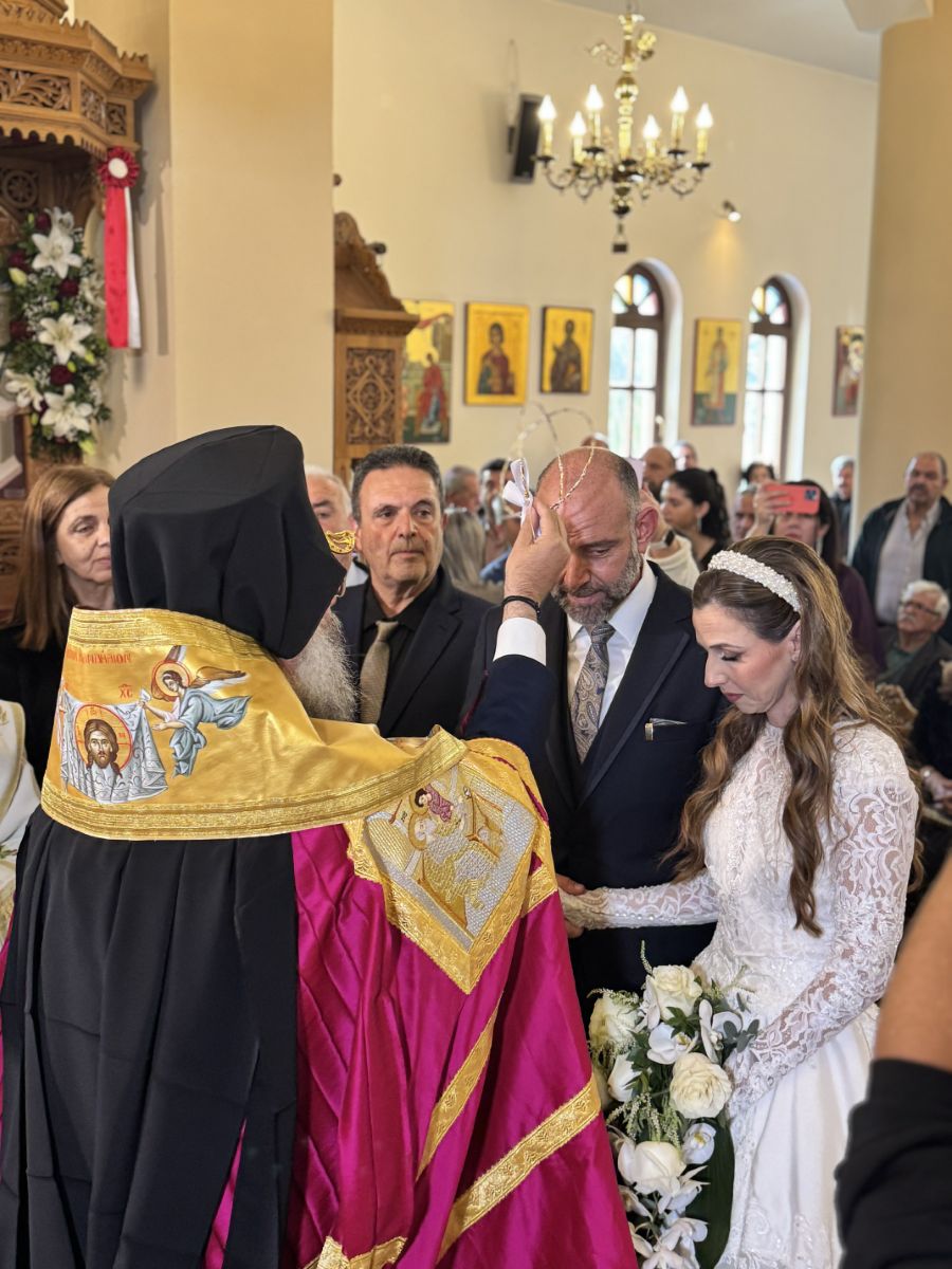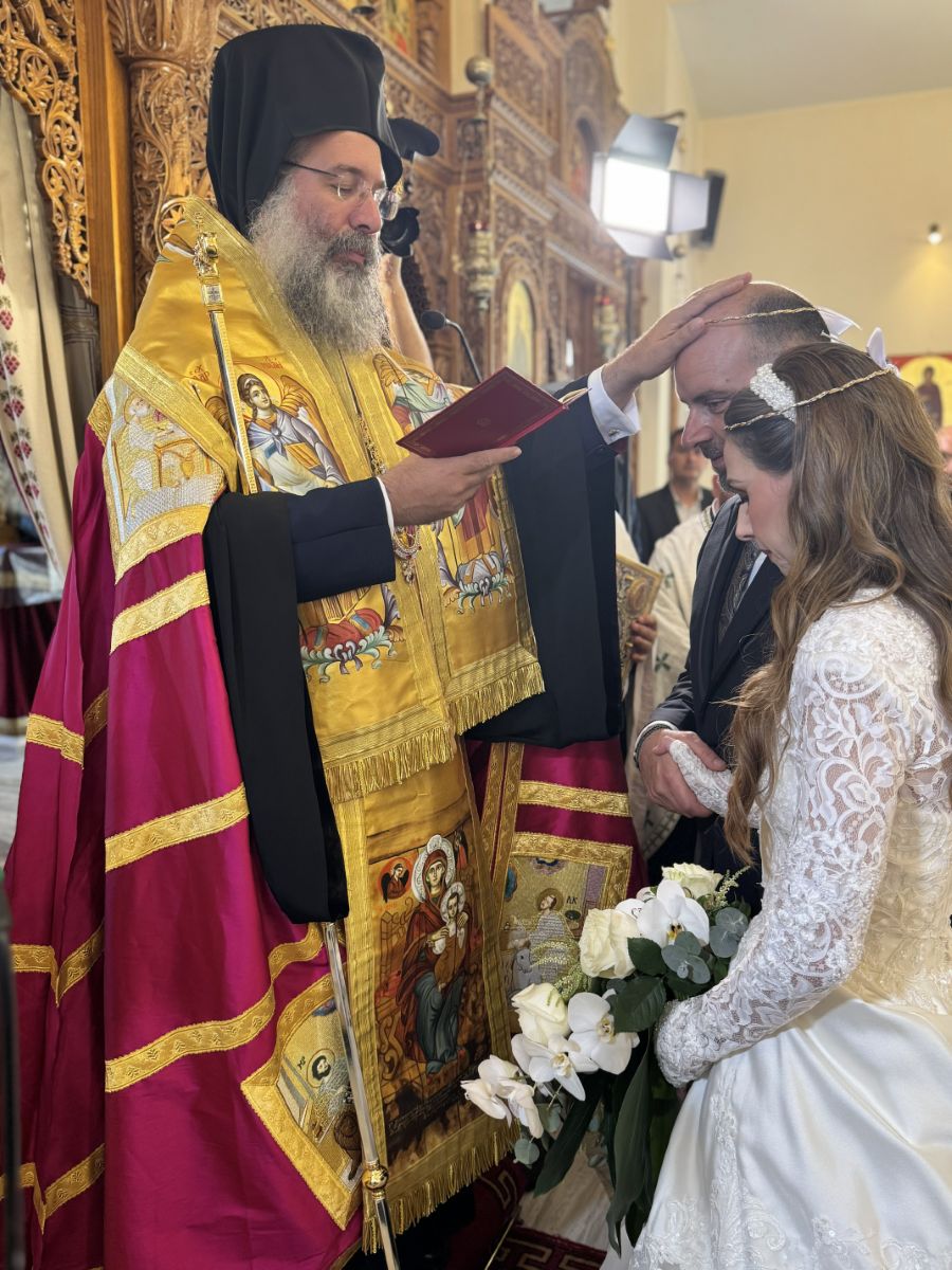Στη συνέχεια, στον Ιερό Ενοριακό Ναό Αγίου Χαραλάμπους Γάλλου, ο Σεβασμιώτατος ευλόγησε τον Γάμο του Μιχαήλ Δημητρακάκη και της Ελένης Κοκονά, τους οποίους συνεχάρη έπειτα και στο γαμήλιο τραπέζι.