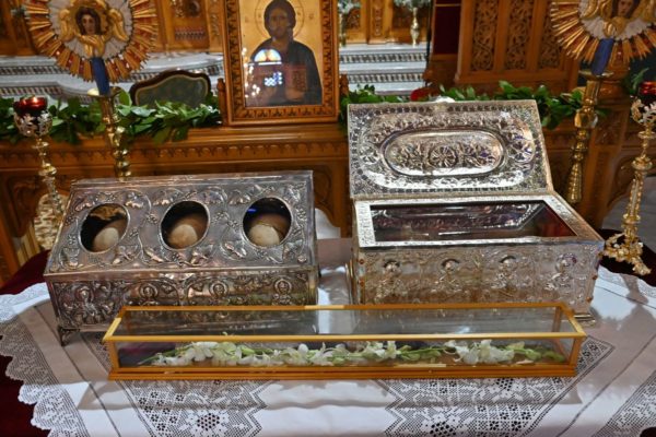 Τα ιερά σεβάσματα υποδέχθηκε ο Σεβασμιώτατος Μητροπολίτης Προικοννήσου κ. Ιωσήφ, ο οποίος και χοροστάτησε κατά τον Εσπερινό και ομίλησε γλαφυρά, επίκαιρα, πατερικά, αλλά και ιστορικά, για την Παναγία και για τους Νεομάρτυρες της πίστεώς μας και τα σύγχρονα μηνύματά τους στους καιρούς μας.