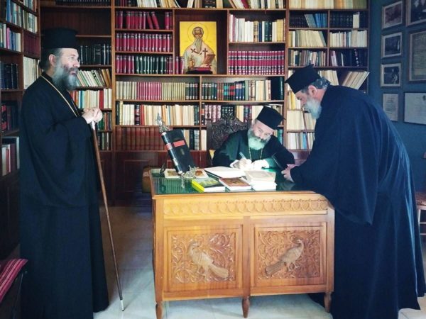 Τον Σεβασμιώτατο Μητροπολίτη Ρεθύμνης και Αυλοποτάμου κ. Πρόδρομο επισκέφθηκε, το Σάββατο του Λαζάρου, 16 Απριλίου, για να του ευχηθεί για την Ενθρόνισή του ο Σεβασμιώτατος Αρχιεπίσκοπος Αυστραλίας κ. Μακάριος.