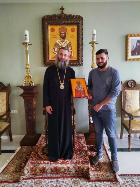 Επίσης, τον Ποιμενάρχη επισκέφθηκε ο εξ Ηρακλείου τριτοετής φοιτητής της Θεολογικής και υποψήφιος κληρικός κ. Κωνσταντίνος Σταματάκης, ο οποίος προσέφερε στον Επίσκοπός εικόνα του Αγίου Ιερομάρτυρος Γερασίμου Επισκόπου Ρεθύμνης που φιλοτέχνησε ο ίδιος.